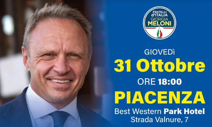 Lo scrive in una nota il Coordinamento provinciale di Fratelli d’Italia Piacenza, annunciando l’appuntamento con il Ministro dell’Agricoltura, della Sovranità alimentare e delle Foreste on. Francesco Lollobrigida, che si terrà giovedì 31 ottobre alle ore 18.00 presso il Park Hotel di Strada Val Nure 7 a Piacenza.