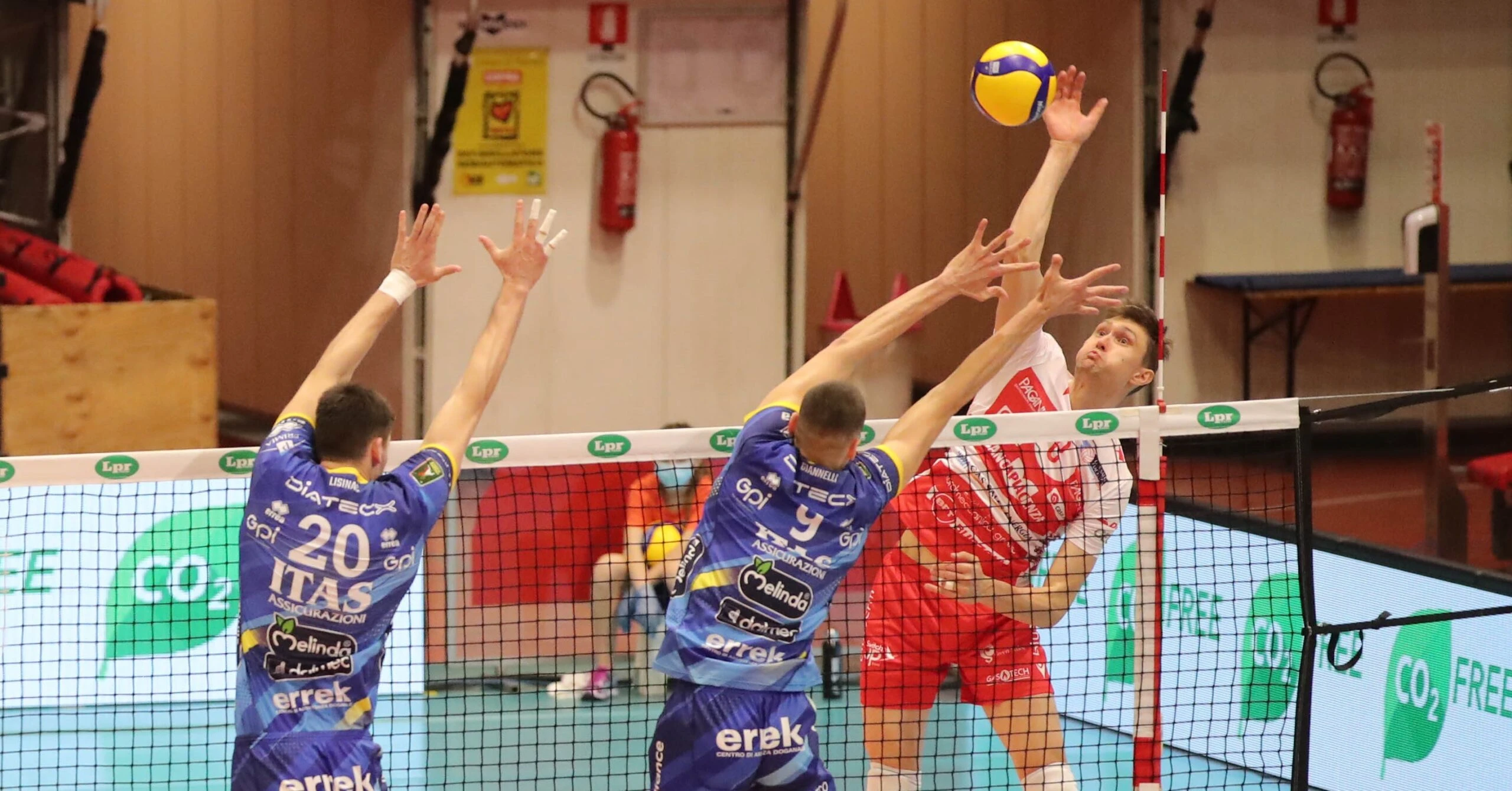 I padroni di casa tengono bene il campo ma non riescono a capitalizzare alcune situazioni, al contrario gli ospiti difendono bene e contrattaccano, ben orchestrati da Giannelli e trascinati dalle giocate di Nimir Abdel Aziz, Mvp a fine match. Tra le fila biancorosse il miglior realizzatore è l’iraniano Seyed Mousavi con 16 punti e il 92% in attacco, seguito da Grozer con 15 punti. Buona prova anche di Oleg Antonov subentrato a Russell nel primo parziale.
