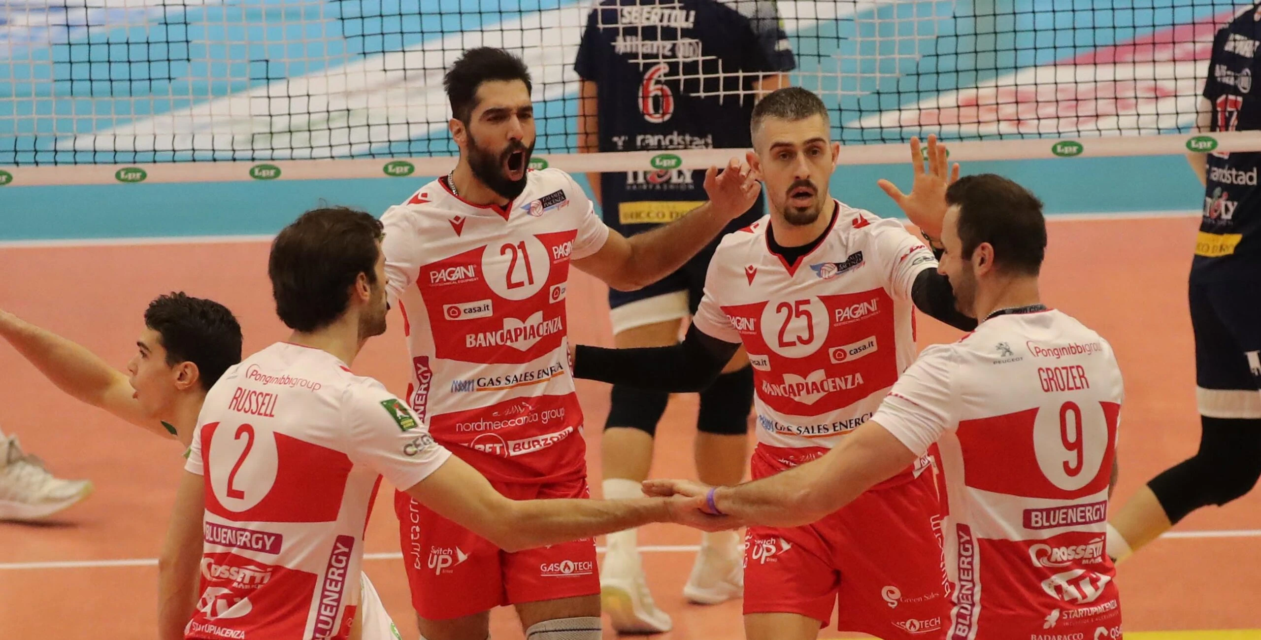 Gas Sales Bluenergy Piacenza: Baranowicz 2, Clevenot 11, Polo 6, Grozer 22, Russell 18, Mousavi 11, Fanuli (L), Scanferla (L), Tondo 1, Antonov 0, Botto 0, Finger 0. N.E. Izzo, Candellaro. All. Bernardi. Allianz Milano: Sbertoli 6, Ishikawa 15, Kozamernik 7, Patry 16, Urnaut 12, Piano 3, Staforini (L), Pesaresi (L), Daldello 0, Weber 0, Basic 0, Mosca 1. N.E. Maar, Meschiari. All. Piazza.