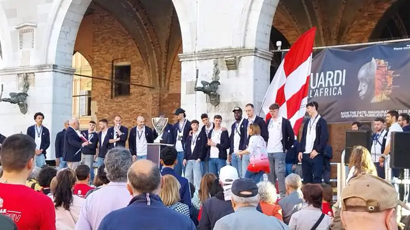 Questa mattina al risveglio qualcuno di loro deve aver pensato si trattasse solo di un sogno, ma fortunatamente è successo davvero. Piacenza ha conquistato la sua prima storica Coppa Cev, riportando un trofeo europeo in città dopo la bellezza di 13 anni. I tifosi della Gas Sales BluEnergy hanno proseguito così i festeggiamenti, riversandosi in Piazza Cavalli per la passerella d’onore concessa allo staff e alla squadra al gran completo.