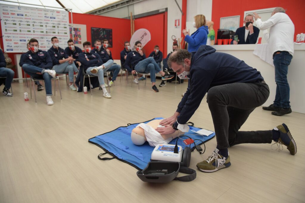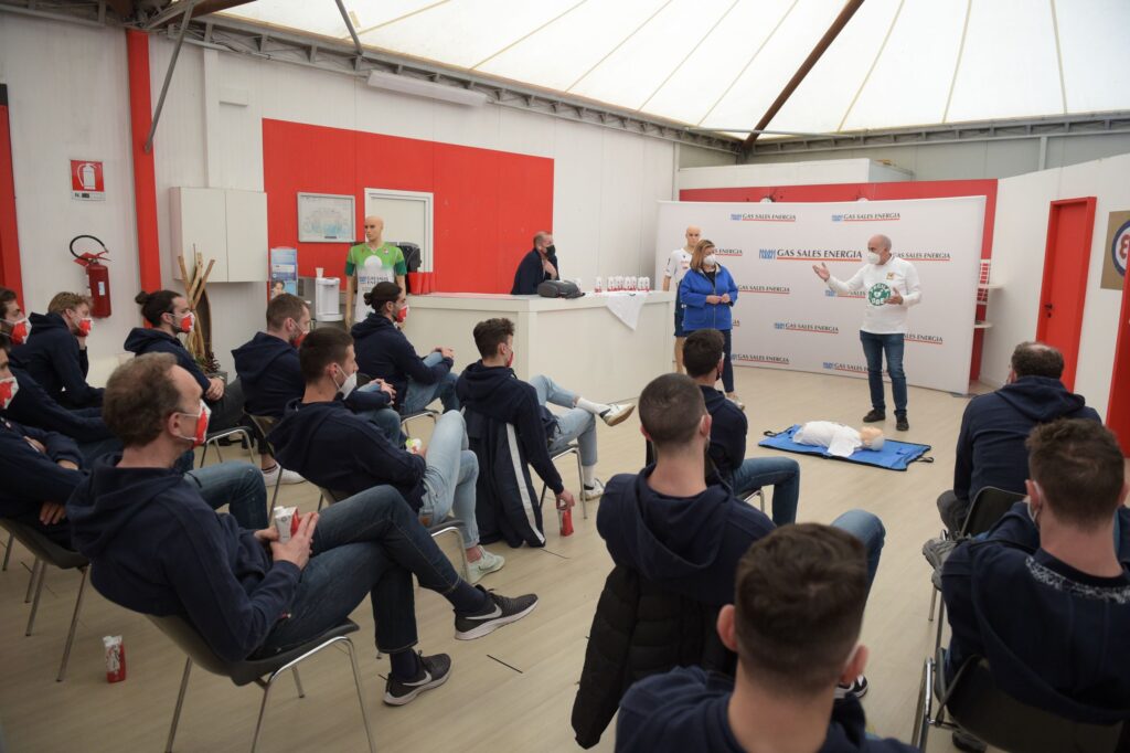 Mattinata di approfondimento sul “primo soccorso” per Gas Sales Piacenza. Presso il foyer del PalabancaSport gli atleti e lo staff tecnico hanno partecipato alla dimostrazione sull’uso del defibrillatore semi-automatico (DAE) condotta dagli istruttori del Centro Formazione di Progetto Vita, potendo constatare di persona l’utilizzo facile ed intuitivo di questo prezioso strumento salvavita.