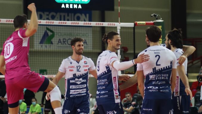 Sotto di due parziali la formazione di Cuttini non vuole più farsi sorprendere ed è brava a sfruttare anche un passaggio a vuoto di Piacenza. Un paio di errori in attacco regalano il 17-14 ai padroni di casa. I biancorossi risalgono ma non riescono mai a pareggiare i conti e la frazione finisce nelle mani della Kioene 25-22. I patavini non si accontentano e diventano protagonisti di una grande rimonta nella quarta frazione. La Gas Sales Bluenergy parte benissimo con il 4-0 di Holt e arriva anche a condurre 18-13 con un attacco di Lagumdzija. A questo punto arriva un black out in casa ospite, con Bottolo e compagni capaci di pareggiare a 20. Nel punto a punto finale hanno la meglio i padroni di casa 25-23.