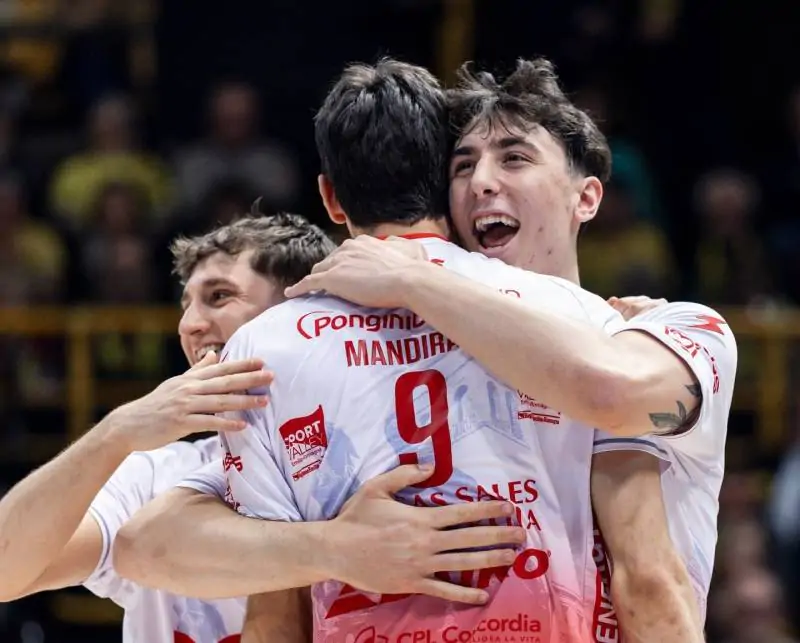 Diagonale vincente di Buchegger 2-4. Diagonale strettissima di Bovolenta che interrompe il turno al servizio di Buchegger 6-7. Ace di Mandiraci che centra l’incrocio delle linee in posto cinque 7-7. Parallela millimetrica di Bovolenta 8-9. Muro di Mati sul primo tempo di Simon, time out chiamato da coach Boninfante 8-11. Servizio out di Gutierrez 10-13. Muro di Comparoni che chiude la diagonale di Porro 12-13. Primo tempo vincente di Mati 12-14. Battuta di Luca Porro che termina out 15-16. Muro di Tizi-Oualou che copre la parallela di Gutierrez 16-18. Super muro di Simon che infiamma il Palabanca 19-19. Mani out di Luca Porro che riporta in parità il parziale 22-22. Secondo ace consecutivo di Buchegger 22-24. Mani out di Luca Porro che chiude il terzo set 23-25.