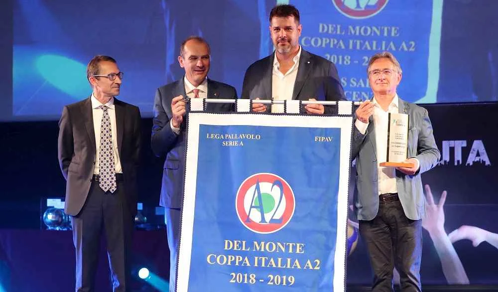 Durante la mattinata spazio anche ai riconoscimenti importanti per tutte quelle società che nel corso della passata stagione hanno conquistato titoli e Piacenza non poteva mancare all’appello, grazie alla doppietta che le ha permesso di centrare al primo colpo la Coppa Italia di Serie A2 e la Promozione in SuperLega. Hristo Zlatanov, direttore generale e Vittorino Francani amministratore unico hanno ritirato dalle mani di Massimo Righi, amministratore delegato Lega Pallavolo e Stefano Morellini vicedirettore Credem Banca il gonfalone per la vittoria del campionato di Serie A2 e della Del Monte Coppa Italia A2. Sul palco li ha raggiunti anche mister Massimo Botti, visibilmente emozionato, premiato come miglior tecnico di Serie A2.