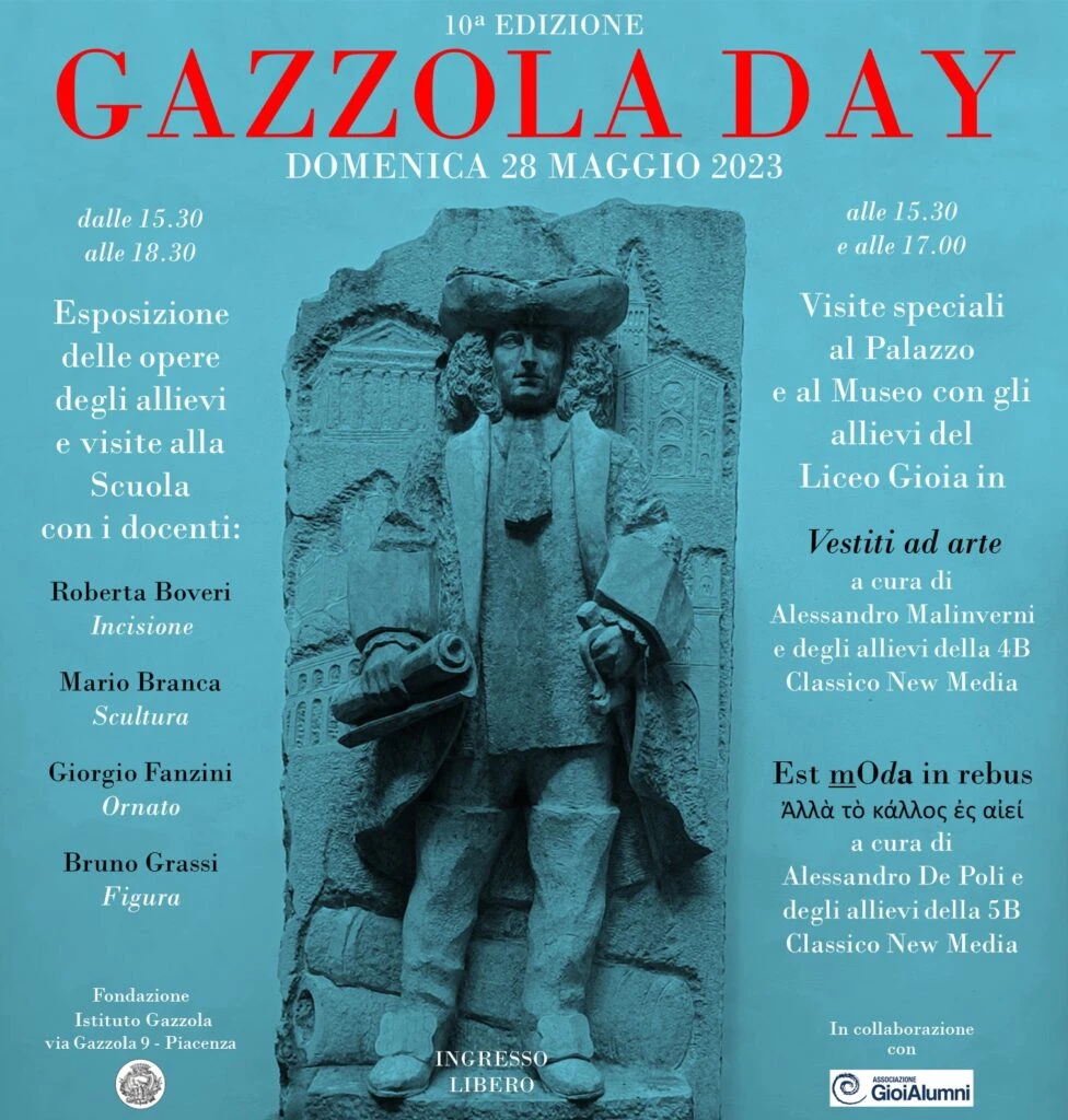 Gazzola Day domenica 28 maggio dalle 15,30 alle 18,30 si festeggia la 10° edizone della festa dedicata alla scuola d’arte e del museo più antichi di Piacenza.