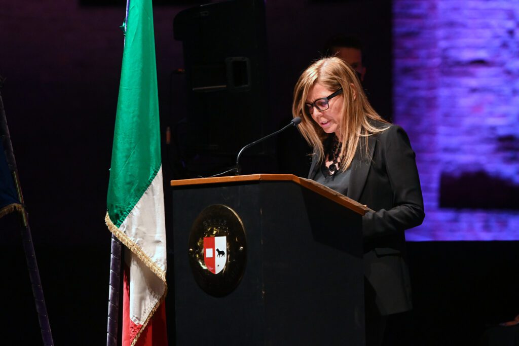 Questa serata è l’occasione in cui dire ancora una volta grazie, con tutto il cuore, a lei e a ciascuno di loro, ed è con profonda emozione che mi appresto, insieme all’assessore alla Cultura Jonathan Papamarenghi e al Presidente provinciale Ana Roberto Lupi, a consegnarle ufficialmente i simboli della nostra riconoscenza.