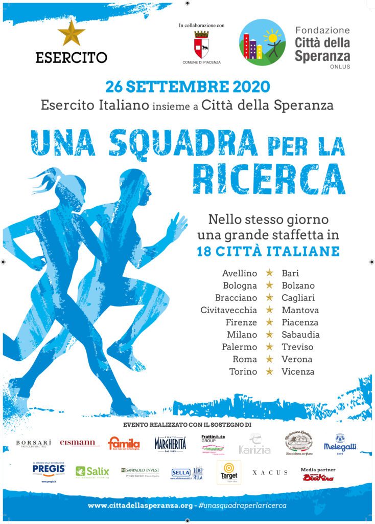 Con questi obiettivi, sabato 26 settembre si terrà la staffetta nazionale intitolata “Una squadra per la ricerca”, organizzata dal Comando Forze Operative Terrestri di Supporto dell’Esercito Italiano, con sede a Verona, ma che vedrà schierati circa 30 reggimenti da esso dipendenti in favore di Fondazione Città della Speranza Onlus impegnata a sostenere la ricerca pediatrica e la diagnostica avanzata delle malattie oncoematologiche, per tutti i bambini in Italia, nel più grande polo europeo dedicato a questo ambito: l’Istituto di Ricerca Pediatrica Città della Speranza.