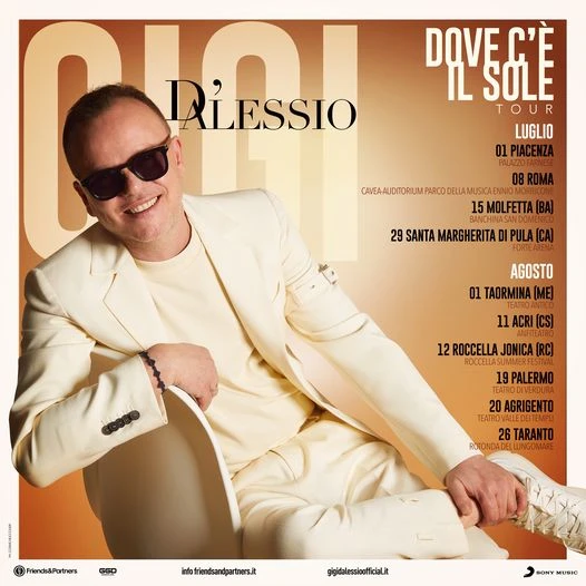 Gigi D’Alessio con il suo tour “Dove c’è il sole tour” farà tappa a Piacenza con un concerto in programma sabato 1 luglio a Palazzo Farnese alle 21.00.