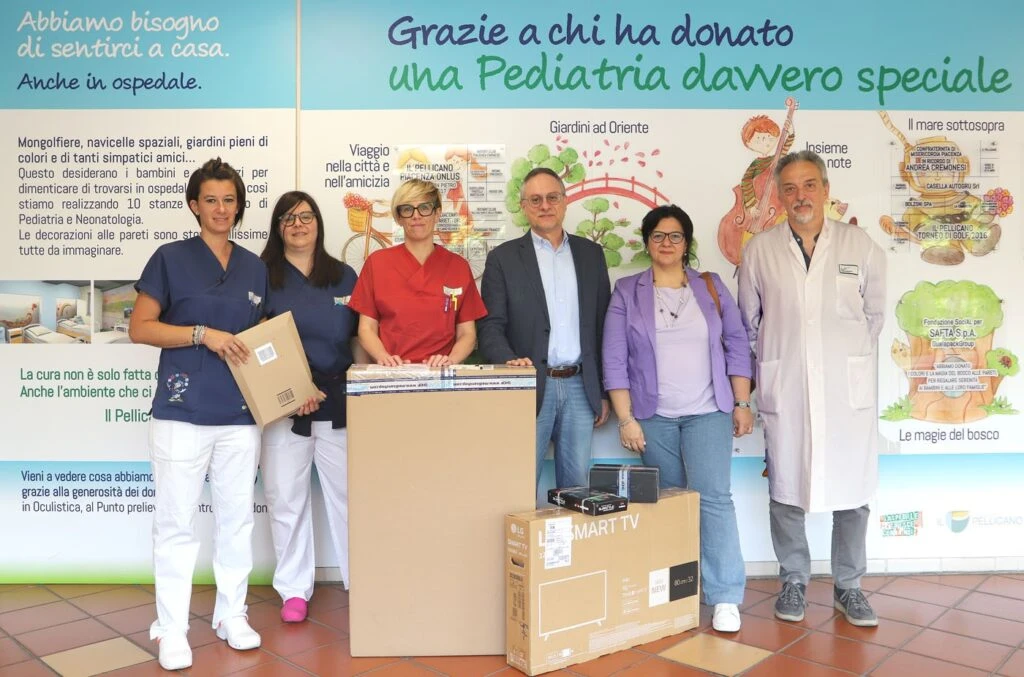 Al Pronto soccorso pediatrico sono stati donati un tavolo servitore a supporto del lavoro degli operatori sanitari, un otoscopio professionale, un televisore con supporto per l’aggancio alla parete e alcuni giochi.