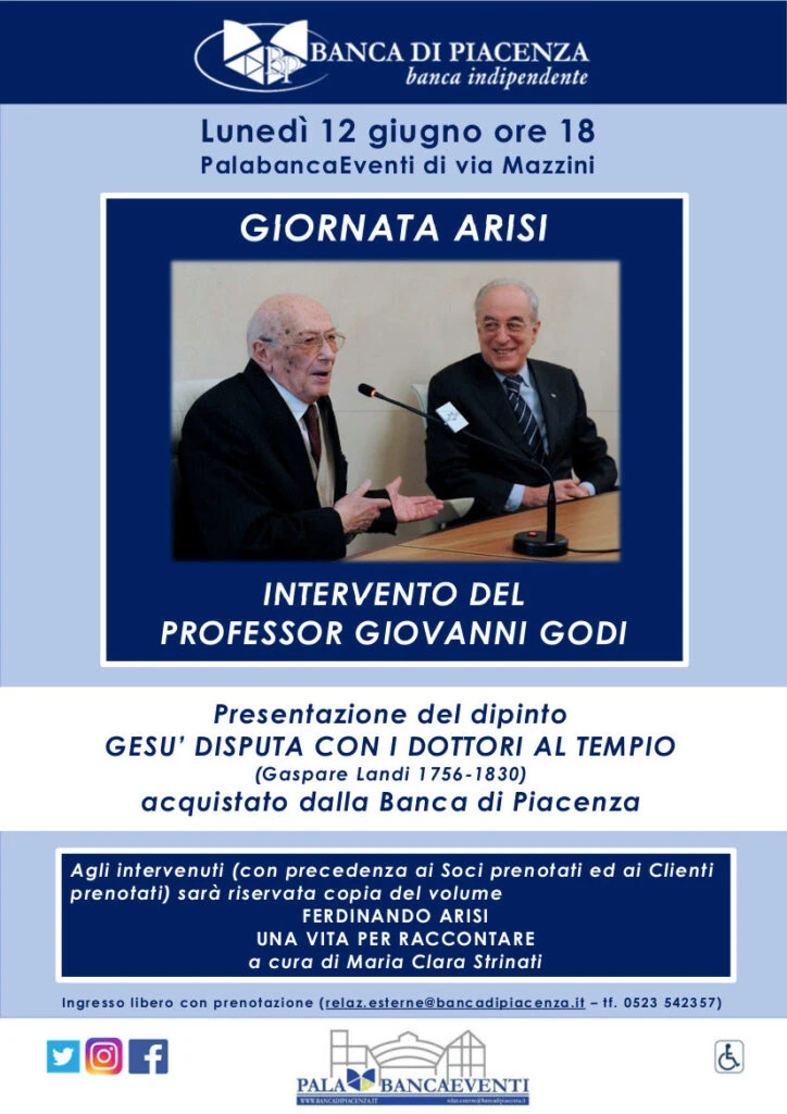 Agli intervenuti (con precedenza ai Soci prenotati e ai Clienti prenotati) sarà riservata copia del volume “Ferdinando Arisi. Una vita da raccontare” a cura di Maria Clara Strinati.