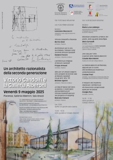 Venerdì 9 maggio 2025, nella suggestiva Sala degli Arazzi della Galleria Alberoni, va in scena una giornata di studi dedicata Vittorio Gandolfi uno dei più significativi esponenti dell’architettura razionalista della seconda generazione, architetto che ideò, progettò e realizzò la Galleria Alberoni stessa, edificio e casa per l’arte tra le più interessanti della città di Piacenza, professionista sempre presente ai grandi appuntamenti della Milano del dopoguerra fino agli anni Sessanta, ma anche protagonista di significativi interventi architettonici a Piacenza e nel resto d’Italia.
