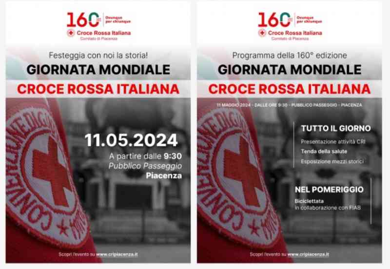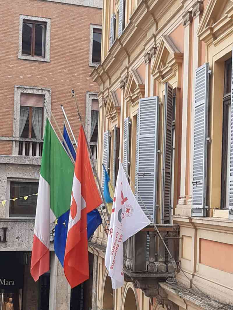 In occasione della Giornata mondiale della Croce Rossa, che oggi celebra il 160° anniversario di costituzione del Movimento fondato da Henry Dunant, sulla facciata del Municipio di Piacenza, accanto ai vessilli istituzionali, è esposta la bandiera dell’associazione.