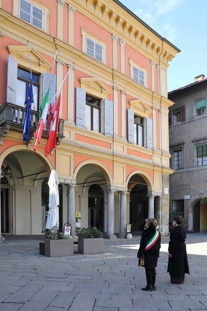 Anche a Piacenza i palazzi del Comune e della Provincia hanno esposto bandiere a mezz’asta. Il sindaco Patrizia Barbieri e il prefetto Daniela Lupo si sono recate in piazza Cavalli per osservare un minuto di silenzio.