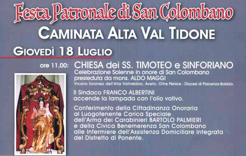 Ricorre giovedì 18 luglio il santo patrono del Comune di Alta Val Tidone, San Colombano, così come proclamato dall’Amministrazione al momento della fusione dei precedenti comuni di Nibbiano, Caminata e Pecorara, in ricordo e celebrazione di quello stesso giorno del 929 quando passò a Nibbiano l’arca contente il corpo del santo durante la traslazione della salma da Bobbio a Pavia e ritorno a Bobbio.
