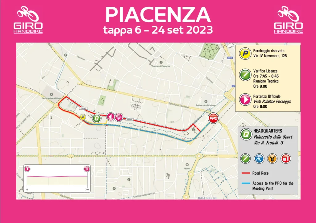 Giro Handbike 2023 partito da Merano continua inarrestabile il suo cammino e arriva con la sua 6 tappa a Piacenza. L’appuntamento è per domenica 24 settembre nei pressi del Palabanca con circuito nei pressi del quartiere le Mose.