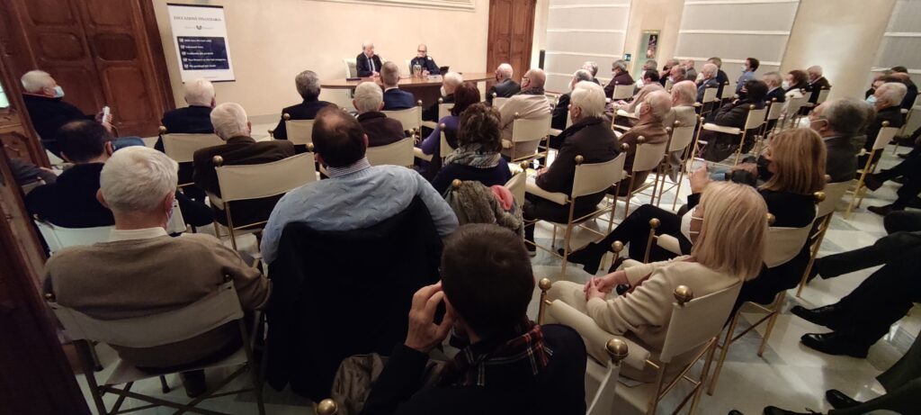 Sono state necessarie tre sale (Panini, Verdi e Casaroli) per ospitare il numerosissimo pubblico intervenuto alla presentazione – al PalabancaEventi (già Palazzo Galli) – del volume “Luigi Einaudi – Elogio del rigore, aforismi per la patria e i risparmiatori” (Rubbettino editore), ultima fatica editoriale di Corrado Sforza Fogliani. Un appuntamento che ha chiuso il ricco Autunno culturale della Banca di Piacenza.