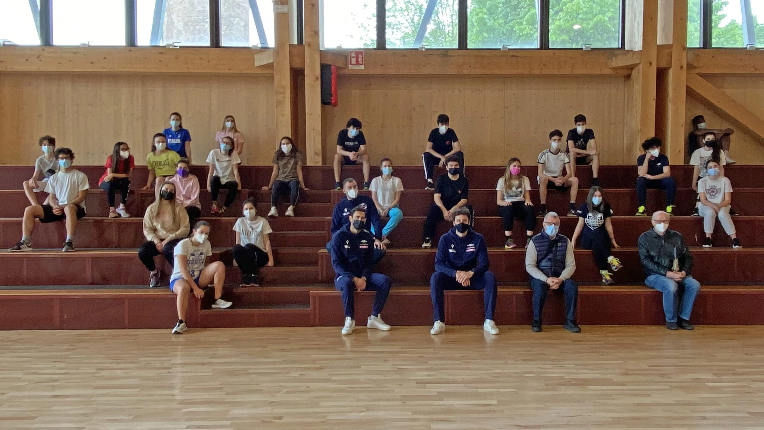 A causa delle attuali normative non è stato possibile praticare esercizi e scambi sotto rete ma questo non ha fermato gli studenti che hanno rivolto agli atleti tante domande e chiesto curiosità sul mondo della pallavolo.