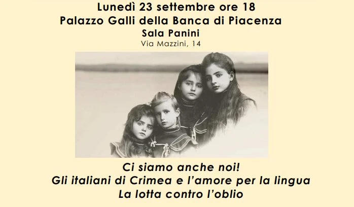 Questa vicenda sarà rievocata lunedì 23 settembre, alle 18, nella Sala Panini di Palazzo Galli della Banca di Piacenza; presente la presidente dell’Associazione Cerkio degli italiani di Crimea; Giulia Giacchetti Boico, alla presenza anche di altre famiglie di origine italiana presenti in particolare in Armenia e nella sua capitale Yerevan.