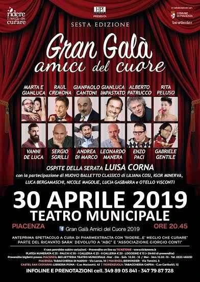 Gran Galà Amici del Cuore, il 30 aprile al Teatro Municipale di Piacenza.