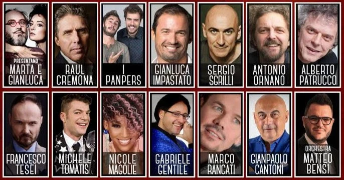 Ma la comicità non può che essere intervallata e accompagnata da musica di qualità: ecco allora, tra gli ospiti della serata, Nicole Magolie, Marco Rancati, Orchestra Matteo Bensi. A condurre la serata una madrina d’eccezione, Maria Grazia Cucinotta.