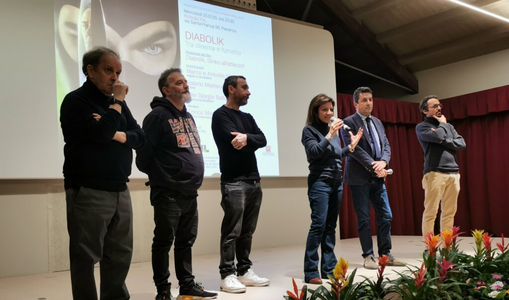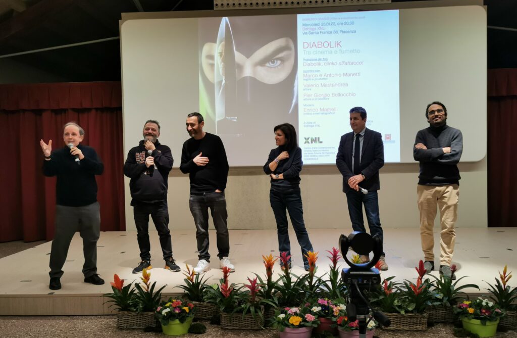 Una lunghissima fila di persone che dall’ingresso di palazzo XNL si estendeva addirittura fino alla metà di via San Siro, tutte in attesa di assistere alla serata evento “Diabolik, tra cinema e fumetto” dedicata al secondo capitolo delle avventure cinematografiche del Re del Terrore nato dalla fantasia di Angela e Luciana Giussani. Non solo la proiezione di “Diabolik – Ginko all’attacco!”, ma anche la possibilità di incontrare i registi Marco e Antonio Manetti e Pier Giorgio Bellocchio, attore e produttore del film. Purtroppo l’attore Valerio Mastandrea non ha potuto presenziare per motivi di salute, ma questo non ha scoraggiato centinaia di piacentini a partecipare, restando anche dopo la proiezione per il dibattito coi protagonisti, moderato dal critico cinematografico Enrico Magrelli.