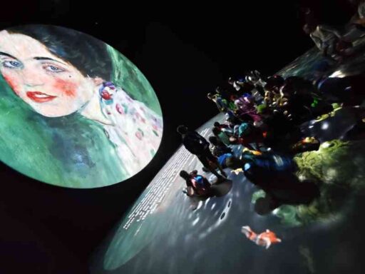La mostra, lo ricordiamo, era un’imponente installazione realizzata nella Sala Corrado Sforza Fogliani da NEO (Narrative Environments Operas). Il visitatore entrava in una sorta di grande scrigno nero, in cui si accendeva uno schermo tondo di nove metri di diametro che restituiva immagini e dettagli della Madonna adorante il Bambino con San Giovannino del Botticelli (il Tondo), dell’Ecce Homo di Antonello da Messina e del Klimt piacentino, il Ritratto di Signora. A completare la magia, un’avvolgente colonna sonora originale tratta da musiche verdiane sapientemente abbinate alle opere, e poi un’installazione interattiva sul pavimento, trasformato in uno specchio d’acqua virtuale in cui immergere i piedi, ascoltare rumori della natura, messaggi e, soprattutto, i propri pensieri.