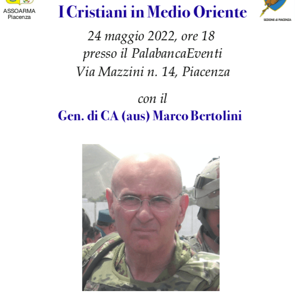 Il Generale Bertolini è un’attento appassionato e studioso delle religioni – spiega Daniele Benzi Presidente della sezione piacentina dell’Associazione Nazionale Paracadutisti d’Italia – in particolare quelle monoteiste. In particolare conosce bene, per il ruolo professionale ricoperto, le contraddizioni e l’ambiente sociale dove sono inserite queste comunità. Sono gruppi che vivono delle difficoltà in Medio Oriente. Il Generale ha decisamente un’attitudine professionale nell’analisi delle notizie, quindi il suo è uno sguardo d’insieme molto oggettivo e completo.
