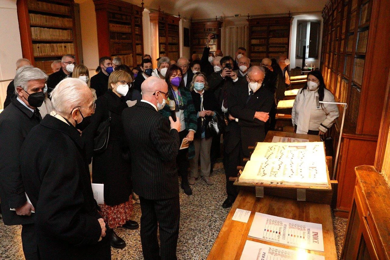 Nella Sala del Duca si terrà un incontro sui Corali, con introduzione di Laura Bonfanti e intervento di Luigi Swich, ispettore onorario delle province di Piacenza e Parma per gli organi storici, che ha curato l’allestimento della mostra di Antifonari e Graduali di Santa Maria di Campagna che si è tenuta nella Biblioteca del Convento all’inizio di aprile.