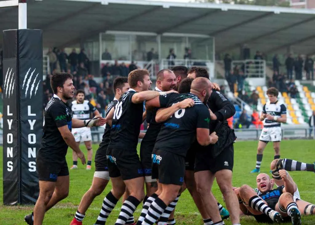 Oggi però i Lyons sono sulle frequenze giuste, e non danno segni di cedimento: si riportano in attacco e Guillomot ha l’occasione per riallungare dalla piazzola, ma stavolta non centra i pali. Sul ribaltamento di fronte è Mogliano a provare l’offensiva, ma la difesa bianconera respinge l’assalto con due rubate in touche, e riporta l’azione nella metà campo avversaria. Guillomot è ancora impreciso dalla piazzola e la partita resta in bilico. C’è ancora tempo per l’arrembaggio finale dei veneti, che macinano un cartellino giallo a Pedrazzani e provano a conquistare la vittoria con i propri avanti, i Lyons si difendono strenuamente per oltre 5’, concedendo diversi calci di punizione, che costano anche un altro cartellino giallo a Capone. Ma la resistenza dei Lyons è encomiabile: la mischia di Mogliano non sfonda, i bianconeri placcano ogni iniziativa, fino al pallone che non esce dal raggruppamento dei veneti che vale il fischio finale dell’arbitro Schipani: è trionfo Lyons al Beltrametti, può partire la festa bianconera.