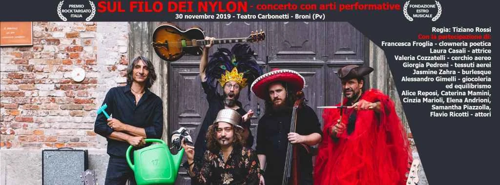 Il gruppo si esibirà in uno spettacolo performativo, dal nome “Sul filo dei Nylon–concerto teatrale in equilibrio precario”, costruito sulle proprie canzoni. Un viaggio teatrale dove la musica d’autore, il rock, le atmosfere gitane e ballad poetiche accompagneranno attori, performer, danzatori e acrobati.