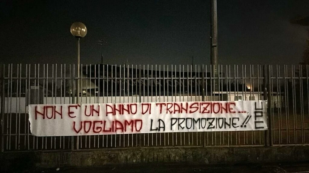 Dopo la sconfitta contro la Casatese e quella nel turno infrasettimanale contro la Folgore Caratese, i tifosi del Piacenza calcio hanno alzato la voce in vista della trasferta del primo ottobre in casa del Caravaggio con uno striscione appeso alla cancellata dello stadio: “Non è un anno di transizione…vogliamo la promozione !”
