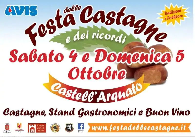 Il 4 e 5 Ottobre a Castell’Arquato torna la Festa delle Castagne. Il via dell’evento è previsto sabato alle ore 16 e alla sera è prevista “La Notte delle Castagne”. Atmosfera magica con musica, specialità e caldarroste. Domenica invece spazio al mercato, alla rassegna di trattori e mestieri e agli stand gastronomici. Tutte le informazioni sul sito della Festa.