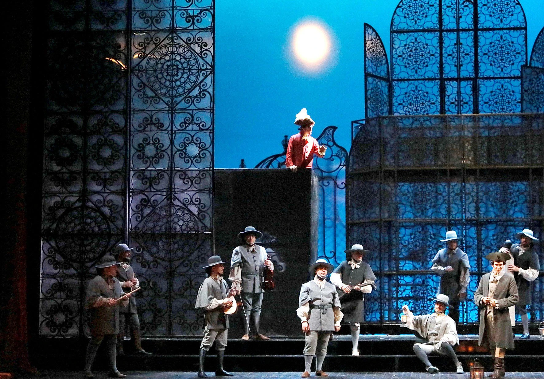Nuovo cast in cui brillano giovanissimi cantanti e specialisti del repertorio rossiniano: il tenore ventitreenne Manuel Amati (Conte D’Almaviva), il mezzosoprano Giuseppina Bridelli al debutto nel ruolo di Rosina, che fa ritorno al Municipale dopo Aci, Galatea e Polifemo di Händel, il baritono dalla carriera internazionale Roberto de Candia (Figaro) il baritono Marco Filippo Romano (Don Bartolo), altro gradito ritorno al Municipale dopo La Cenerentola e La forza del destino, così come quello del basso Mattia Denti (Don Basilio), piacentino come Stefania Ferrari (Berta), Simone Tansini (Ufficiale) e la stessa Bridelli, nel segno della continua attenzione agli artisti del territorio, e il baritono Francesco Cascione (Fiorello). Le scene sono firmate da Poppi Ranchetti, i costumi da Artemio Cabassi e le luci da Michele Cremona.