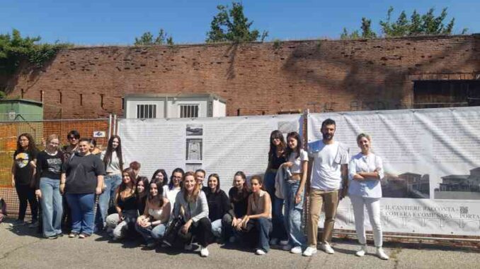 Visita al cantiere di Porta Borghetto, questa mattina, per gli allievi della classe 4° indirizzo Grafica del liceo artistico Cassinari. Accompagnati dai docenti Maria Costanzo e Roberto Dapoto, tutor del progetto “Il cantiere racconta – Com’era e come sarà”, ideato dall’assessorato all’Urbanistica del Comune di Piacenza e affidato all’istituto come PCTO (percorso per competenze trasversali e orientamento), hanno posizionato i due cartelloni interattivi che, inquadrando l’apposito QR code, rivelano testi, immagini, link e file audio realizzati dagli studenti, che consentono di approfondire il contesto storico-geografico e culturale dell’area, il progetto esecutivo finale e la nuova destinazione d’uso.