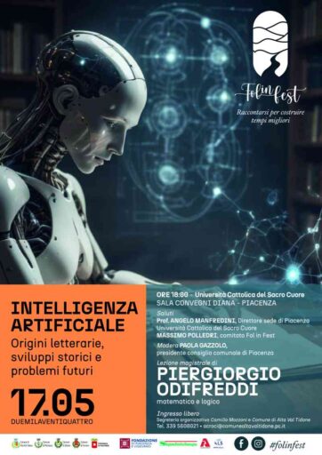 “Il dibattito sull’Intelligenza Artificiale è diventato quanto mai di attualità – commenta Massimo Polledri, presidente del comitato Fol in Fest – anche se lo studio dell’approccio e del rapporto tra uomo e macchine risale alla notte dei tempi. Le macchine hanno sempre cambiato la storia dell’uomo, pensiamo all’aratro, al telaio generando ferite ma anche progresso. Ci aiuterà a capire uno dei maggiori esperti e studiosi in materia quali il Professor Piergiorgio Odifreddi, famoso matematico e filosofo della scienza. Aprirà la lezione magistrale il Professor Angelo Manfredini, Direttore della sede di Piacenza del Sacro Cuore e padrone di casa”.