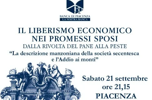 Torna in città la serie di appuntamenti dell’estate manzoniana targata Banca di Piacenza. “Il liberismo economico nei Promessi Sposi – dalla rivolta del pane alla peste” è il tema scelto per il reading teatrale. Progetto proposto da Mino Manni con Marta Ossoli (accompagnamento musicale di Silvia Mangiarotti al violino e Francesca Ruffilli al violoncello). L’iniziativa dell’Istituto di credito di via Mazzini si avvale del patrocinio dei Comuni di Agazzano, Alseno, Alta Val Tidone e Lodi.