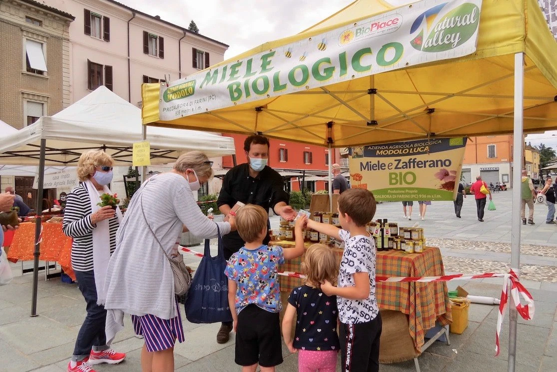 Non mancheranno tutti i freschi prodotti dei Contadini, le verdure e la frutta anche di montagna, patate, formaggi freschi e stagionati, carne biologica, miele, zafferano, vini diversi, erbe aromatiche, spezie, verdure essiccate, pane prodotti da forno, yogurt e tanto altro solo proveniente dai territori piacentini.