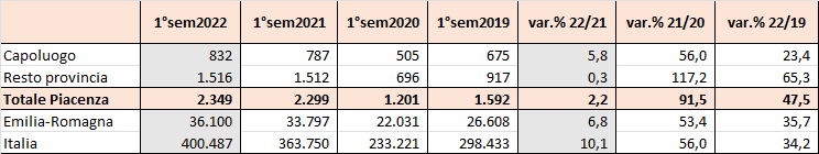 Secondo i dati dell’Osservatorio del Mercato Immobiliare (OMI) dell’Agenzia delle Entrate, nel primo semestre del 2022 sono state registrate in provincia di Piacenza 2.349 compravendite immobiliari (Numero di transazioni normalizzate) nel comparto residenziale, in crescita del 2,2% a confronto con il primo semestre del 2021. Il trend continua quindi a restare in terreno ampiamente positivo, anche se evidenzia una comprensibile decelerazione dopo la fortissima ripresa delle transazioni che si era osservata tra i primi semestri 2021/2020 (+91,5%) grazie ai miglioramenti della situazione pandemica ed economica. Di fatto, l’aumento delle compravendite immobiliari residenziali è stato nel piacentino del 47,5% rispetto al primo semestre del 2019, un valore che attesta come il recupero delle transazioni nel nostro territorio dai minimi della crisi del Covid sia decisamente superiore a quelli registrati in Emilia-Romagna (+35,7%) e in Italia (+34,2%).