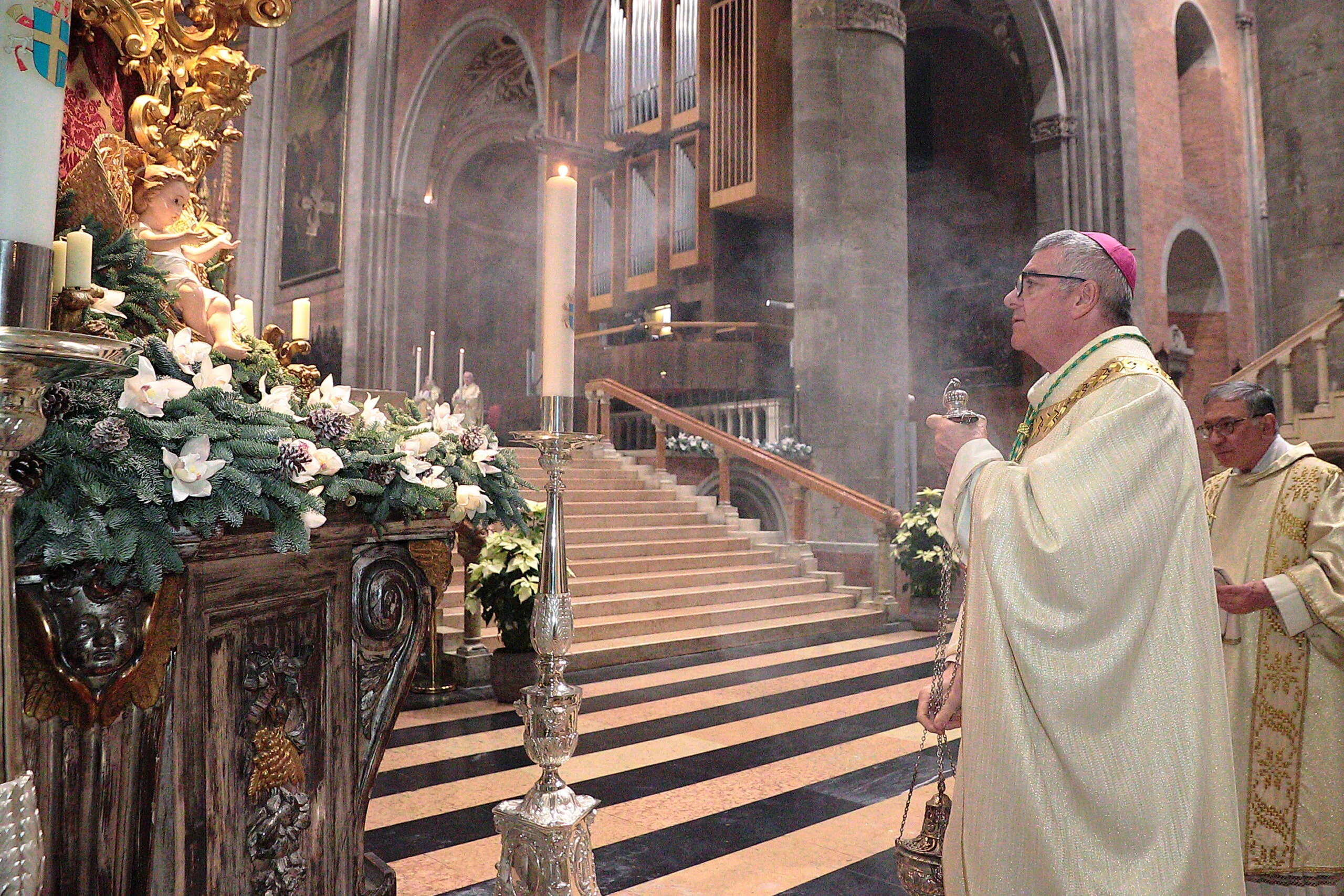 “A Betlemme niente sveglia il torpore della città. In ogni tempo c’è una città che, ignara di tutto, è chiusa nel proprio mondo, assopita”. Da duemila anni fa a oggi, il mondo è profondamente cambiato ma, in fondo, tutto è rimasto come allora. A parlarne è il vescovo mons. Adriano Cevolotto nella messa della notte di Natale in Cattedrale a Piacenza.