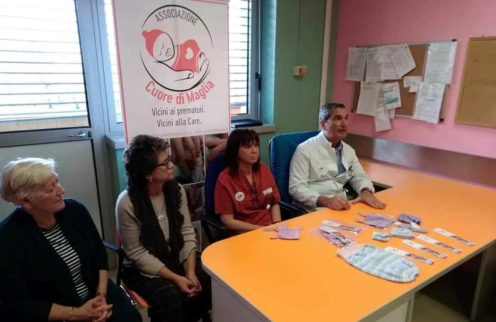 Proprio sui bambini prematuri si concentra l’operato dell’associazione Cuore di Maglia. Un gruppo di donne accomunate dalla passione per il lavoro a maglia che sistematicamente donano al reparto indumenti cuciti con le proprie mani. Abbigliamento utile proprio per quei piccoli nati prima del termine.
