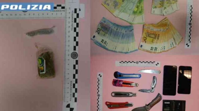 Nel corso dell’attività di controllo gli operatori hanno individuato un soggetto già noto in quanto destinatario di diversi precedenti di polizia, soprattutto concentrati negli ultimi mesi, per reati inerenti le sostanze stupefacenti, contro il patrimonio e contro la persona aggravati dall’uso di arma da taglio. Inoltre, risultava destinatario della misura di prevenzione del divieto di accesso alle aree del centro urbano, provvedimento violato già in due precedenti occasioni.