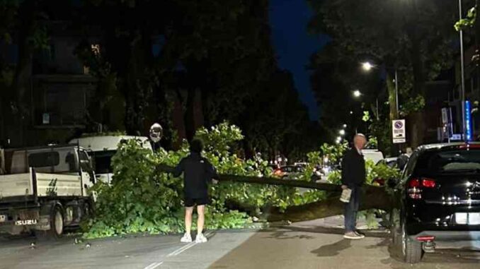 Dopo le intense piogge ecco arrivare il vento, e i disagi continuano. Intorno alle 21,45 un albero è precipitato in via Boselli invadendo e bloccando la carreggiata. Fortunatamente nessuno è rimasto ferito, ma sono da valutare eventuali danni accorsi alle auto parcheggiate. Strada ovviamente chiusa al traffico, in attesa della rimozione della pianta.