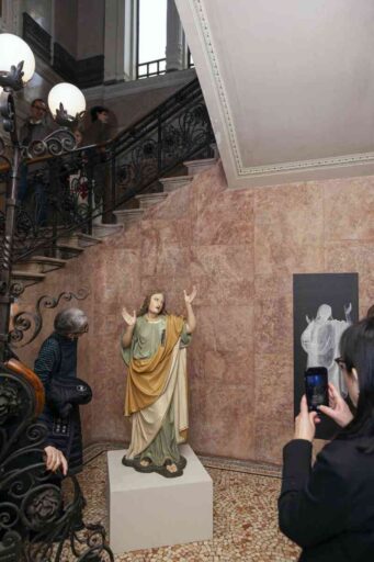 Nella galleria al piano rialzato l’emozione intima e dirompente generata dalle monumentali sculture di Berlinde De Bruyckere e dalle sofisticate incisioni di Carol Rama, e al primo piano il giardino di opere creato da Andrea Sala, in cui oggetti liturgici provenienti dai depositi diocesani si confondono con le sculture fragili e preziose dell’artista, realizzati in terracotta, ceramica e vetro. E poi il/la Dolente, opera proveniente dal patrimonio delle collezioni della Diocesi di recente attribuita all’illustre scultore rinascimentale Giovanni Angelo Del Maino, che è stata oggetto di uno studio di restauro accuratamente documentato in mostra.
