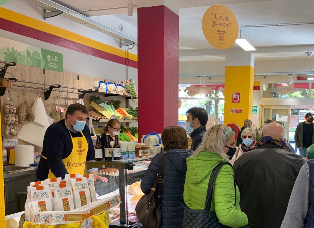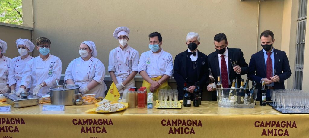 Entrando negli spazi di via Farnesiana, il consumatore oltre a poter fare la spesa sostenibile e di qualità, può gustare le nostre eccellenze. Questo grazie agli agriaperitivi con i prodotti e ai cuochi contadini. Oggi, per l’inaugurazione, erano presenti il Presidente degli agriturismi Terranostra Paolo Oddi, Claudia Anselmi, Rosa Simonelli e Mariarosa Minardi che hanno cucinato per i presenti un menù a km zero, che ha proposto come primo i pisarei e fasò. “E’ sempre importante ricordare che prima di essere cuochi contadini – ha affermato la piacentina Elisabetta Montesissa, che oltre a essere alla vicedirezione della Fondazione di Campagna Amica ricopre il ruolo di segretario nazionale di Terranostra – sono agricoltori, quindi cucinano quello che producono”.