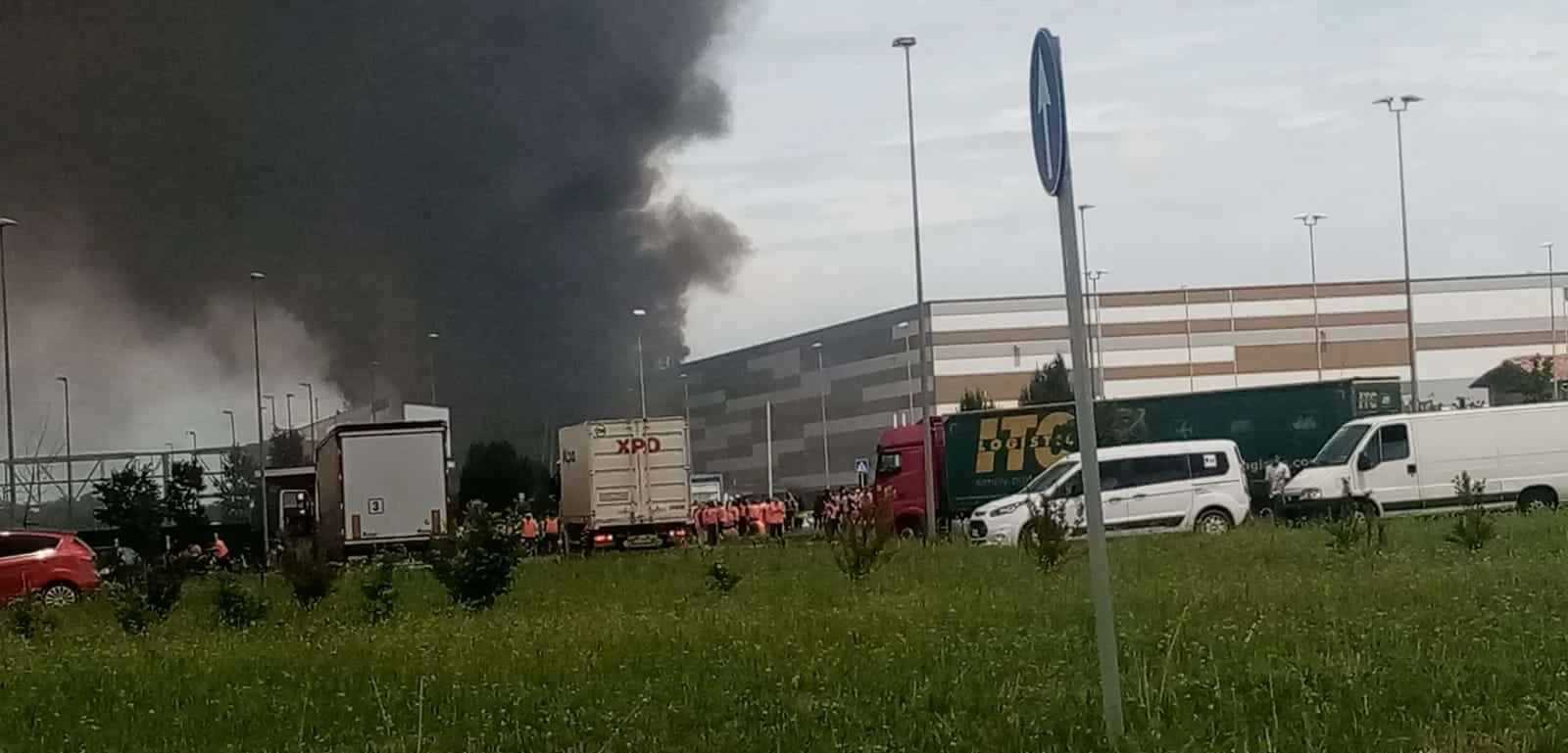 Incendio al polo logistico di Pontenure. I fatti sono accaduti questo pomeriggio. Le fiamme sono divampate sul tetto di un capannone dove erano in corso alcuni lavori di manutenzione. La colonna di fumo era visibile a chilometri di distanza.