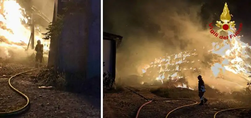 I pompieri si sono trovati di fronte a uno scenario molto delicato: il magazzino ospitante le rotoballe in fiamme, infatti, era adiacente a una stalla, in quel momento con animali all’interno, e adiacente alla stessa abitazione dei proprietari.