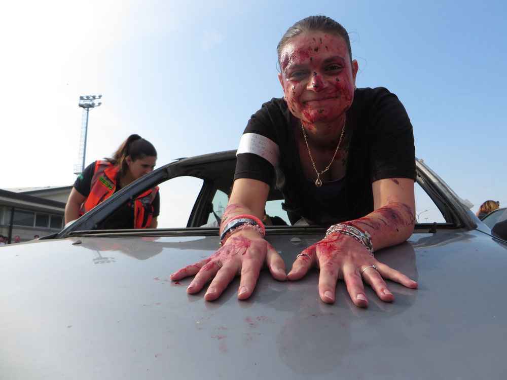 Lo scenario attentamente studiato dal Gruppo Truccatori e Simulatori di ANPAS, ha previsto una collisione di più mezzi con oltre una decina di feriti. L’invio simulato avviene grazia alla Sala Radio della Pubblica Assistenza Croce Bianca di Piacenza.