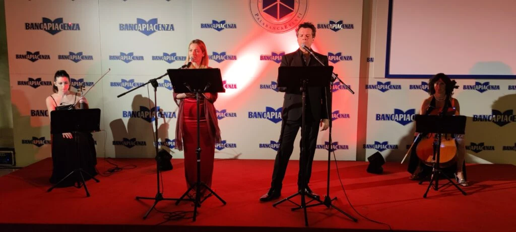Tra i presenti, la moglie del presidente Sforza, Maria Antonietta De Micheli, il presidente nazionale di Confedilizia Giorgio Spaziani Testa, il segretario generale Alessandra Egidi, il consigliere del Cda della Banca di Piacenza Domenico Capra e il vicedirettore generale Pietro Boselli ai protagonisti del reading.