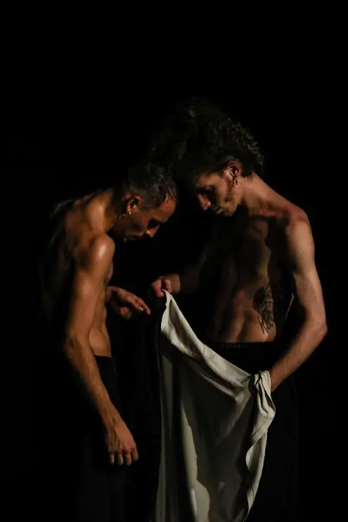 “Triptych” è una riflessione intima e potente sulla condizione umana, un viaggio che attraversa il corpo, l’identità e il tempo. In un continuo intreccio di simbolismi e significati, le performances esplorano tre dimensioni fondamentali dell’esperienza individuale e collettiva, rivelando il delicato equilibrio tra opposti e l’incessante ricerca di autenticità in un mondo che spesso impone maschere e aspettative, in un flusso che alterna silenzi, gesti e incontri,