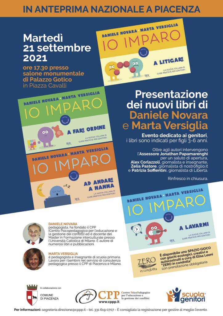“Io Imparo”, presentazione in Anteprima Nazionale a Piacenza dei libri con Daniele Novara e Marta Versiglia. L’appuntamento è previsto martedì 21 settembre alle 17.30 presso il Salone Monumentale di Palazzo Gotico in Piazza Cavalli a Piacenza. Si tratta della nuova collana di libri Rizzoli a cura di Daniele Novara e Marta Versiglia per genitori con figli 3-6 anni. IO IMPARO segue i genitori per migliorare queste azioni, fornendo gli strumenti per affrontare le difficoltà più comuni.